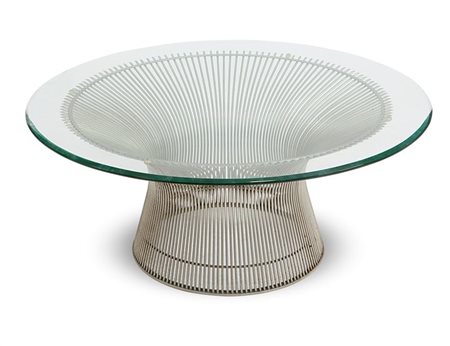 PLATNER WARREN Tavolino rotondo, supporto in fili metallici cromati, piano in...