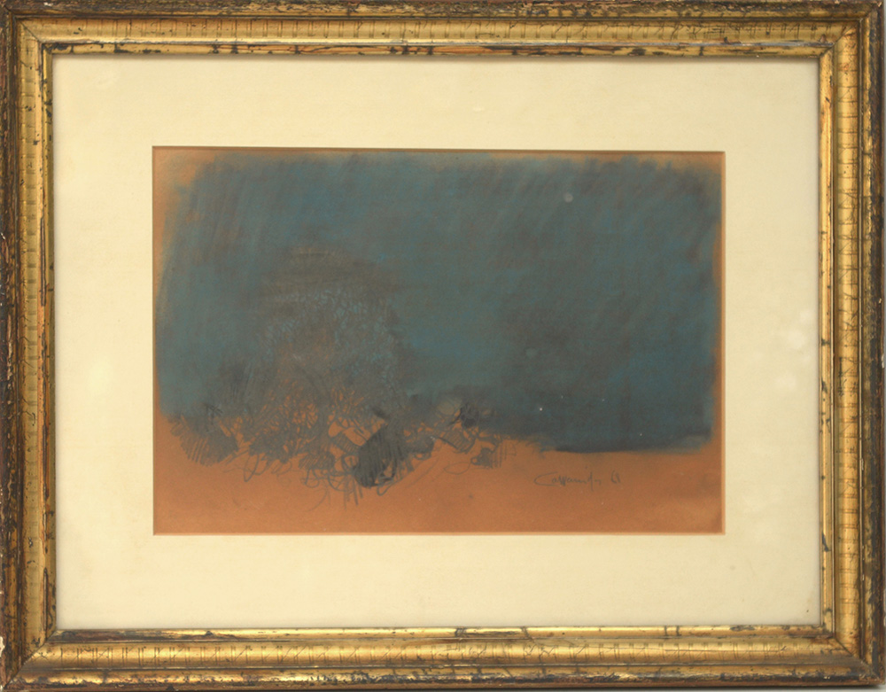 Giancarlo Cazzaniga (Monza 1930) "Senza titolo" 1968 tecnica mista su carta (cm 23x34), firmato e datato a matita in basso a destra. In cornice del secolo XIX