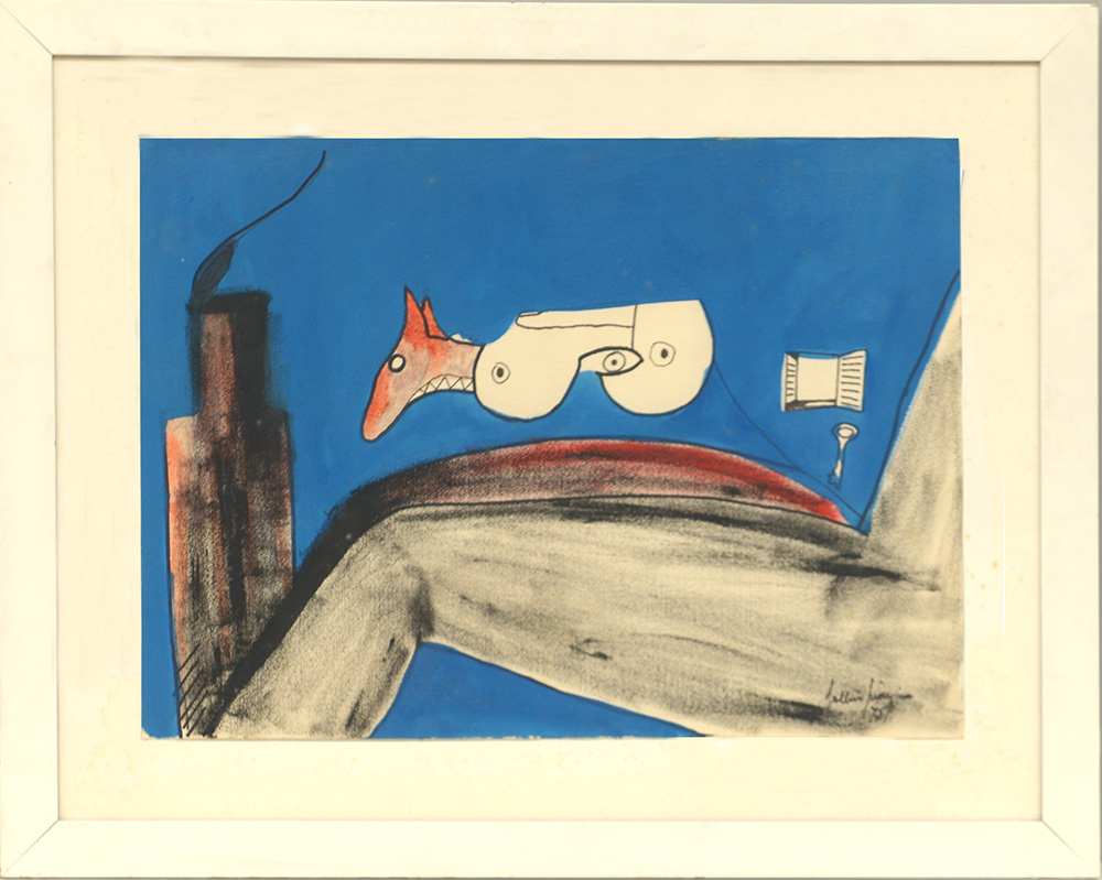 Firma indecifrata "Senza titolo" 1977, tecnica mista su cartoncino (cm 46x61,5) firmato e datato in basso a destra, in cornice