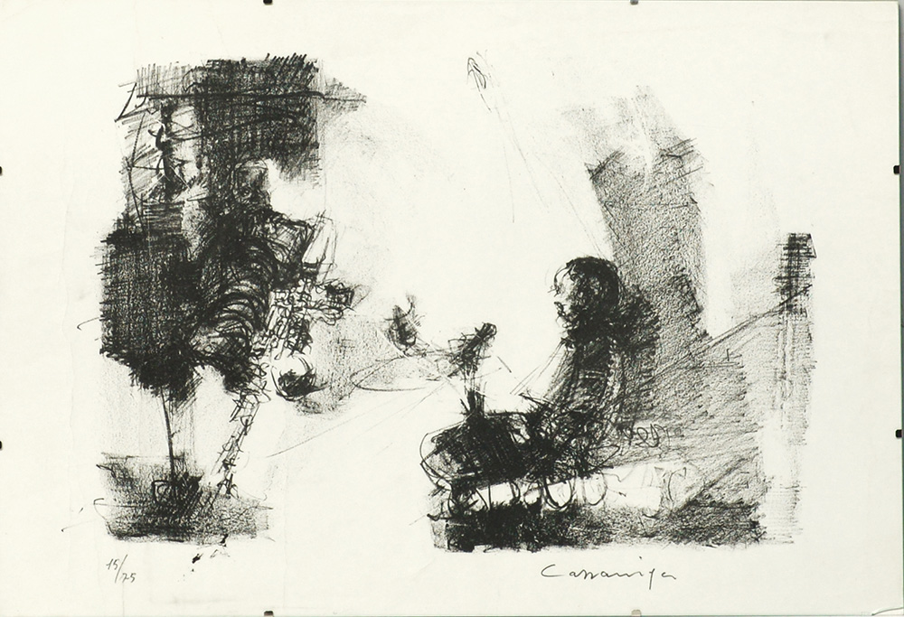 Giancarlo Cazzaniga (Monza 1930) "Senza titolo" litografia (foglio cm 35x50) numerata 15/75 e firmata in basso a matita (lievi difetti)