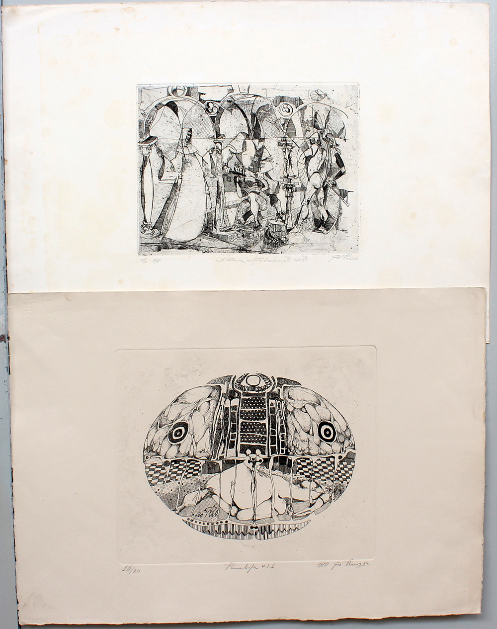 Giò Pino lotto composto da quattro acqueforti dell'artista di soggetti e misure diverse (difetti)