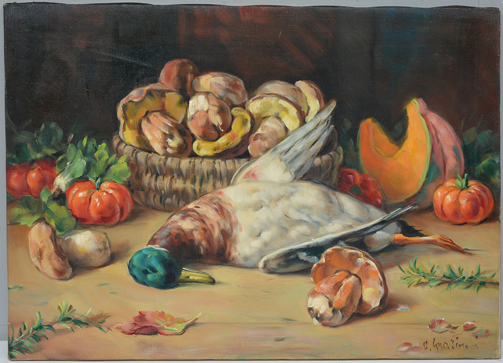 Alfio Paolo Graziani (Roncoferraro 1900 - Gavirate 1981) "Natura morta con cacciagione" olio su tela (cm 50x70) firmato in basso a destra. Firmato al retro (lievi difetti)