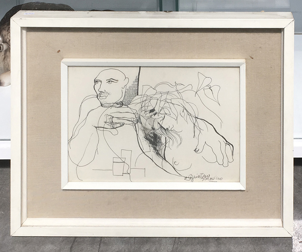Firma indecifrata "Senza titolo" disegno a china (cm 21x28) firmato in basso a destra, in cornice (difetti)