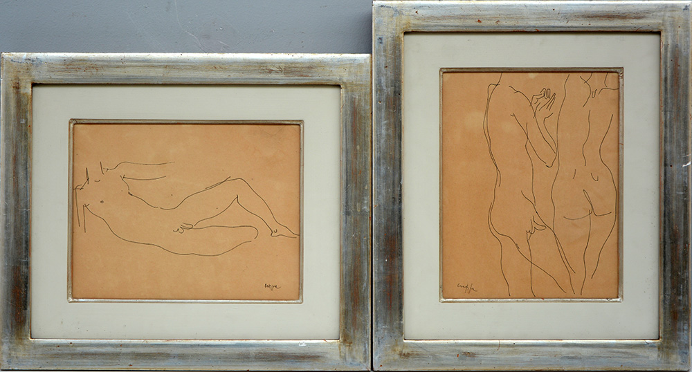 Firma indecifrata, "Senza titolo" coppia di disegni a china su carta intelata (cm 28,5x22,5; 22,5x28,5) entrambi firmati, in cornici (lievi difetti)
