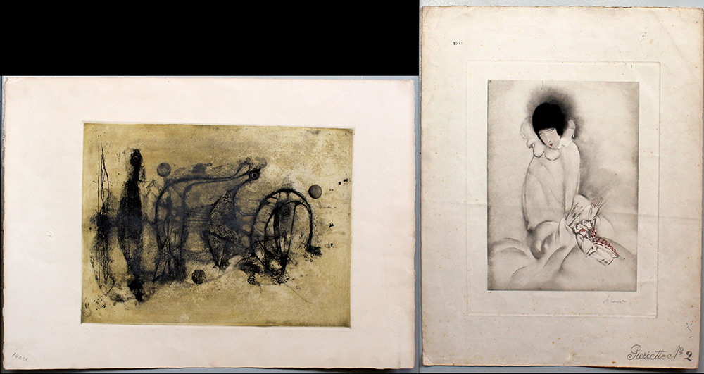 Lotto composto da numerose grafiche di autori, misure e tecniche diverse e una tecnica mista su carta firmata Destefano del 1959 (cm 47,5x66) (lievi difetti).