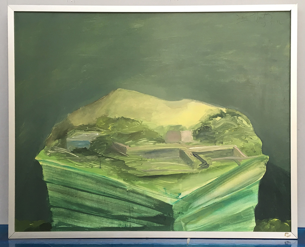 Raffaele Carrieri (Taranto 1905 - Pietrasanta 1984) "Visione di paesaggio" 1972 olio su tela (cm 73x92) firmato e datato in alto a destra 29-5-72, firmato, datato, titolato ed etichetta dell'artista al retro, in cornice