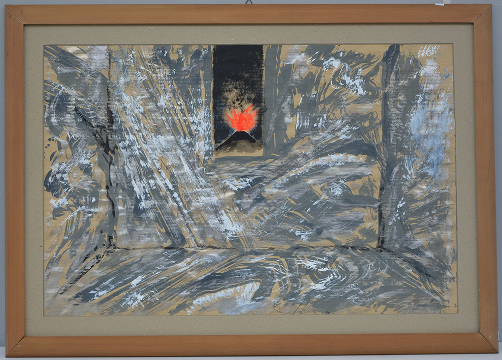 Silvio Merlino (Napoli 1952) "Senza titolo" 1984, tecnica mista su carta (cm 49x75) monogrammata e datata in basso a destra a matita, in cornice (lievi difetti)