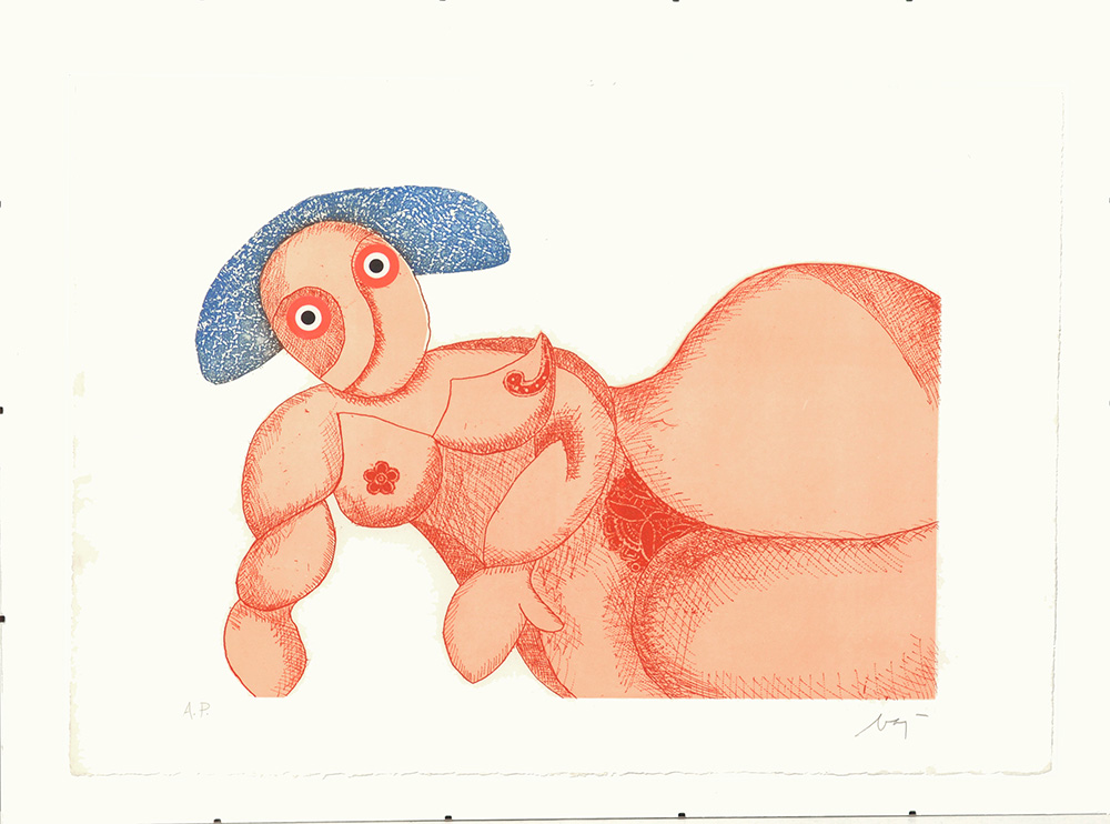 Enrico Baj (Milano 1924 - Vergiate 2003) "Nudo sdraiato" 1970, acquaforte a...
