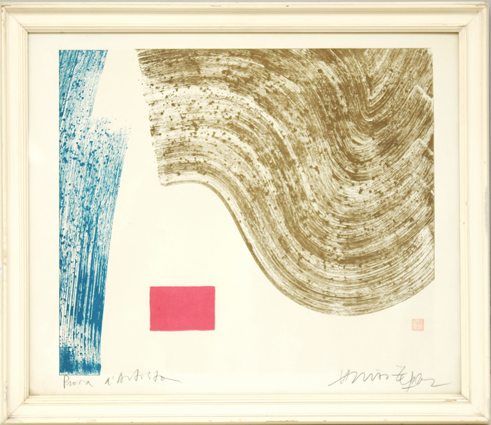 Chin Hsiao (Shanghai 1935) "Senza titolo" litografia a colori - prova d'artista (foglio cm 50,5x61) iscritta e firmata in basso a matita, in cornice (lievi difetti)