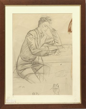 Marcello Dudovich (Trieste 1878 - Milano 1962) "Il compito" matita grassa su carta (cm 41,5x31,5)siglato in basso a sinistra, in cornice (lievi difetti) Parere verbale di autenticità dell'Archivio Marcello Dudovich, Milano