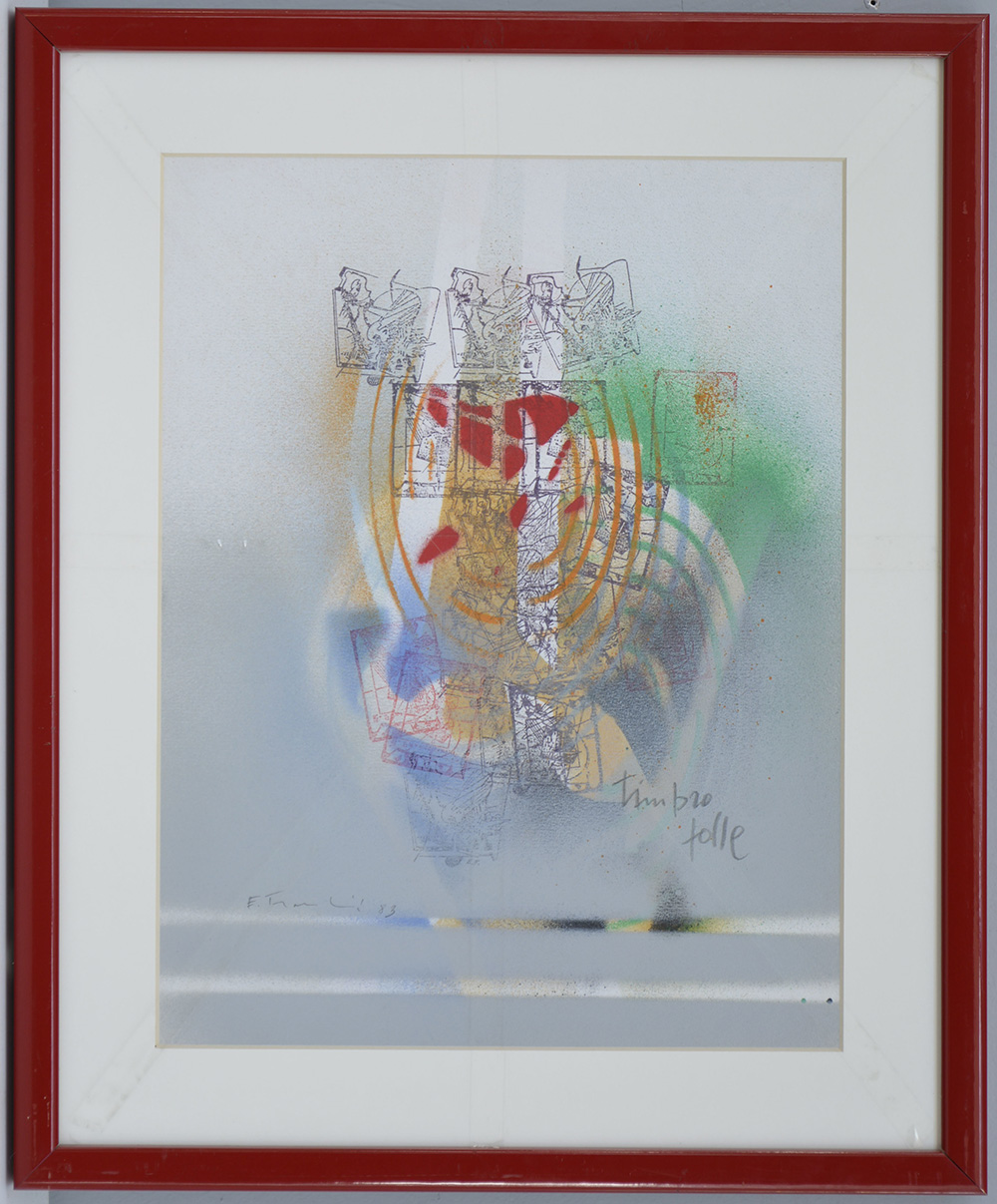 Edoardo Franceschini (Catania 1928 - 2006) "Timbro folle" 1983, tecnica mista su cartoncino (cm 41x31) titolato in basso a destra, firmato e datato in basso a sinistra a matita, in cornice