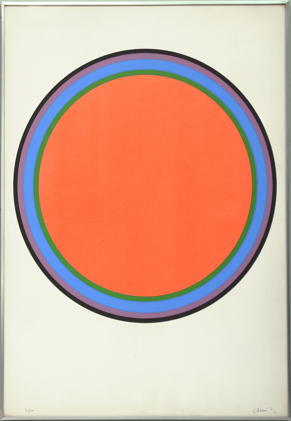 Eugenio Carmi (Genova 1920 - Lugano 2016) "Senza titolo" 1970, serigrafia a colori (cm 70x50). Numerata 21/100, firmata e datata in basso a matita. In cornice (lievi difetti)