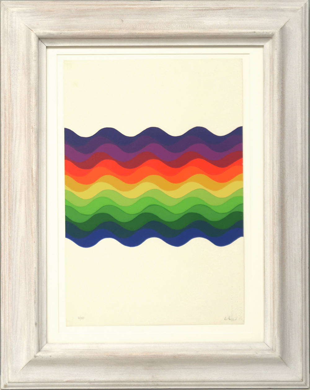 Julio Le Parc (Mendoza 1928) "Senza titolo" serigrafia a colori (cm 35x 23,5) numerata 10/100 e firmata in basso a matita. Timbro a secco in basso a destra "La Nuova Foglio Grafica Club. Pollenza di Macerata", in cornice