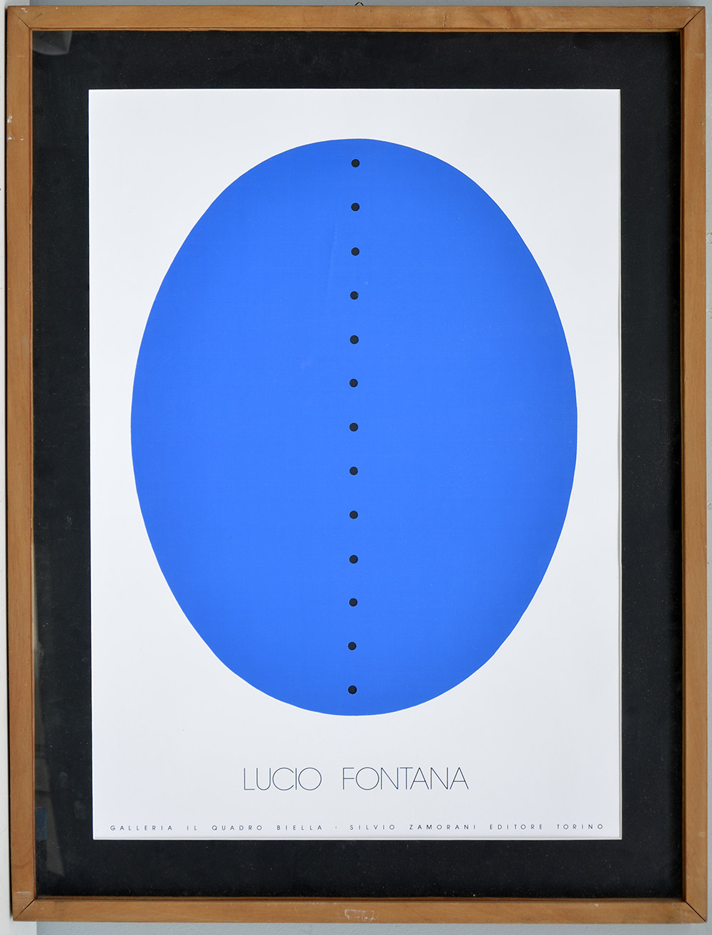 Manifesto serigrafico realizzato per la Galleria Il Quadro, Biella con un'opera di Lucio Fontana (foglio cm 50x70). Silvio Zamorani Editore, Torino. In cornice