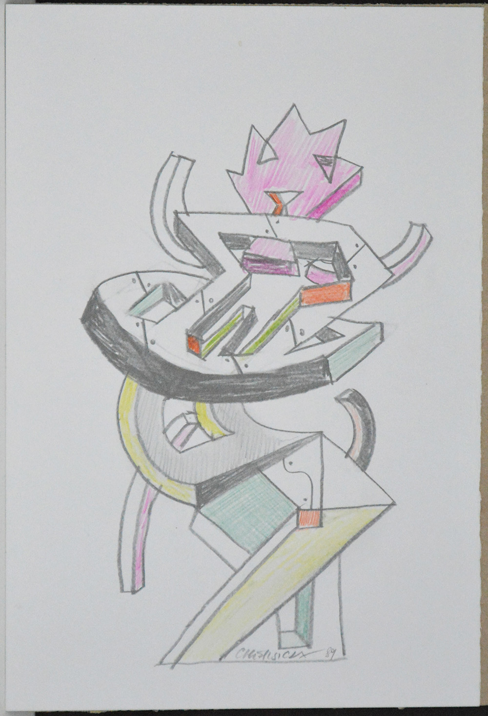 Bruno Chersicla (Trieste 1937 - 2013) "Senza titolo" 1989, tecnica mista su carta (cm 29,5x20) firmato e datato in basso a matita.