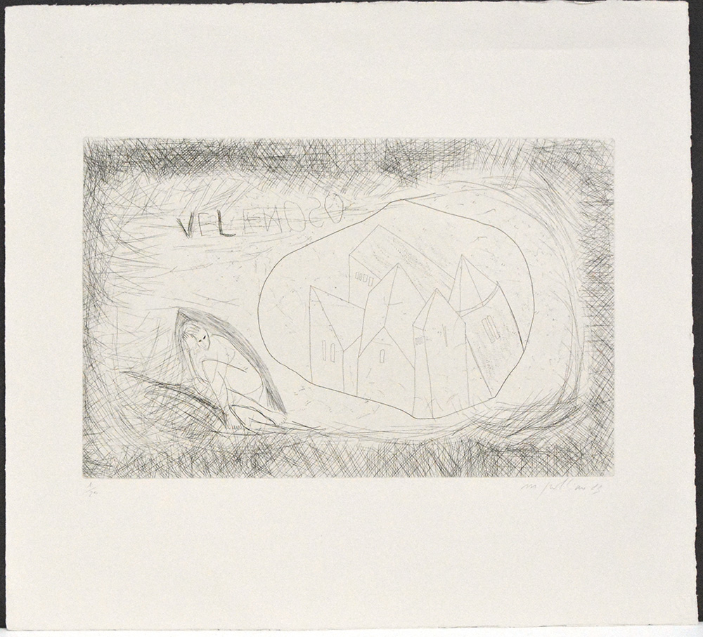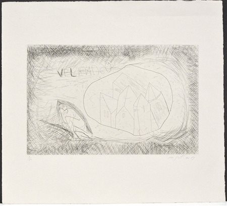 Mimmo Paladino (Paduli 1948) "Velenoso" acquaforte (lastra cm 31x48,5; foglio cm 57x63)titolata in lastra. Numerata 1/20, firmata e datata in basso a matita. Timbro a secco in basso a destra