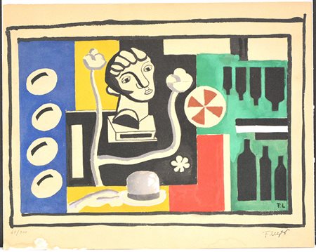 Fernand Leger (Argentan 1881 - Gif Sur Ivette 1955) "Senza titolo" litografia a colori (cm 40x50) numerata 41/300 in basso a sinistra a matita. Timbro a secco in basso a destra "Musée Biot - Fernand Leger" (difetti)
