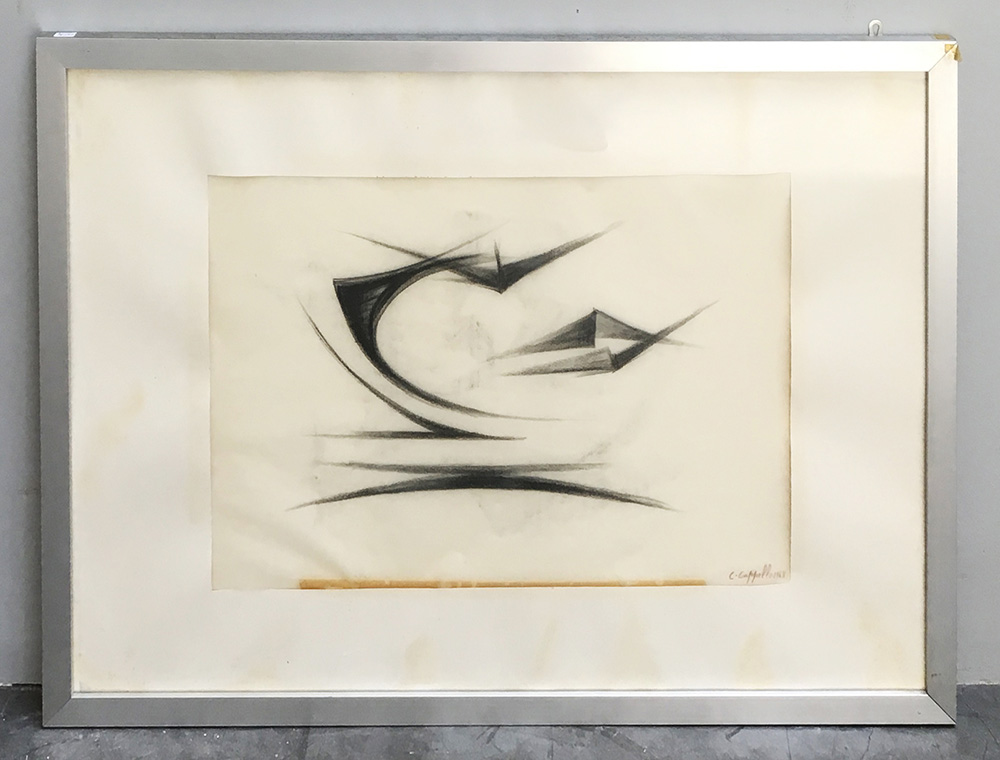 Carmelo Cappello (Ragusa 1912 - Milano 1996) "Senza titolo" 1968 disegno a carboncino su carta da lucido (cm 32x46) firmato e datato a pennarello in basso a destra, in cornice (lievi difetti) Parere verbale di autenticità dell'Archivio Carmelo Cappello, Milano.