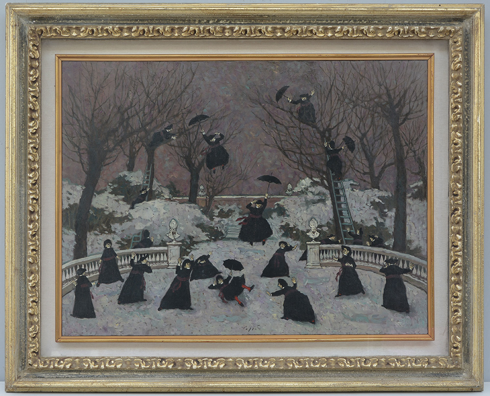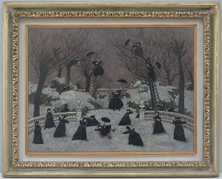Nino Caffè (Alfedena 1909 - Pesaro 1975) "Senza titolo" 1969, olio su tela (cm 50x70) firmato in basso al centro. Datato, firmato e dedicato al retro, in cornice. Parere verbale di autenticità del Professor Giorgio Borghi.