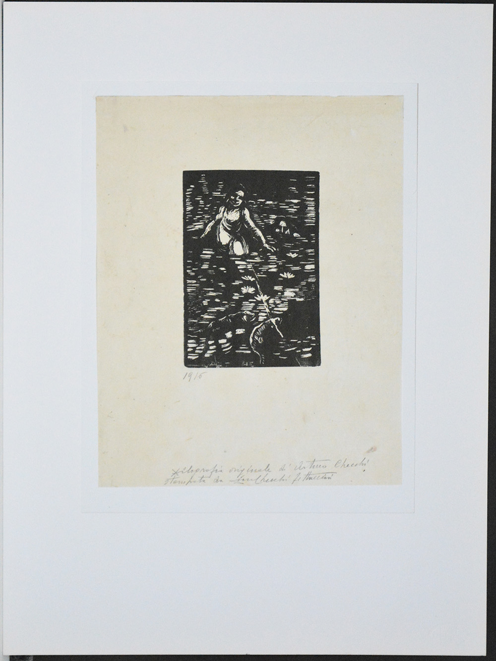 Arturo Checchi (1886 - 1971) "Senza titolo" 1916, xilografia stampata su carta di riso (foglio cm 28x22) siglata in lastra in basso a sinistra. Datata e iscritta in basso a matita.