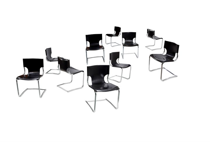 BARTOLI CARLO 920 Dieci sedie con struttura smontabile in tubi d'acciaio...
