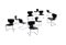 Dieci sedie con struttura smontabile in tubi d'acciaio cromato.