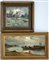 Lotto di due olii raffiguranti pescherecci e un paesaggio agreste, autori e misure differenti, in cornici (lievi difetti)