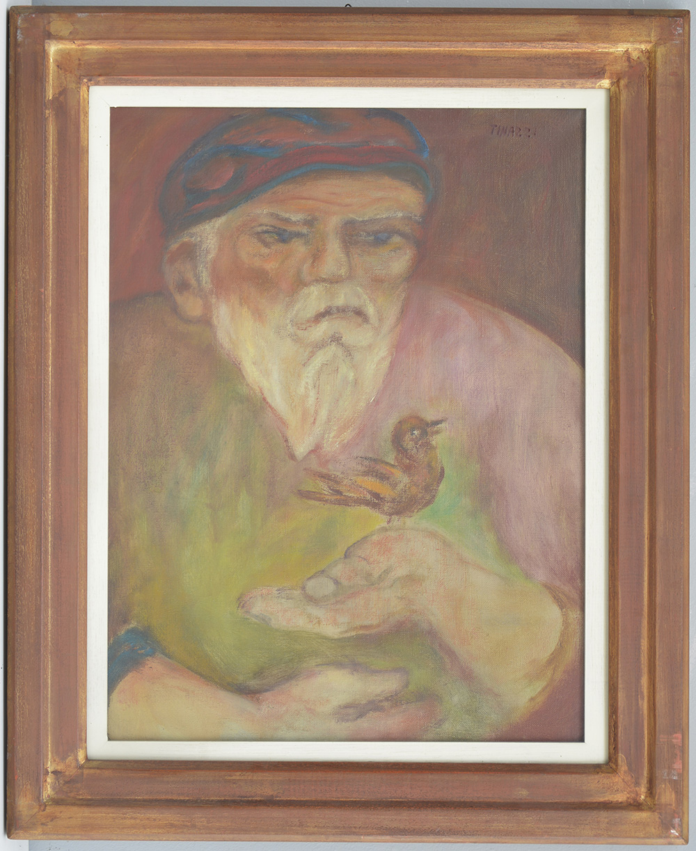 Nillo Tinazzi (1922) "Il vecchio col passero" olio su tela (cm 61x46,5)...