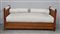 Lotto 3967 | Ottomana in legno con decoro a bugne e fianchi a ringhiera, seduta e cuscini...