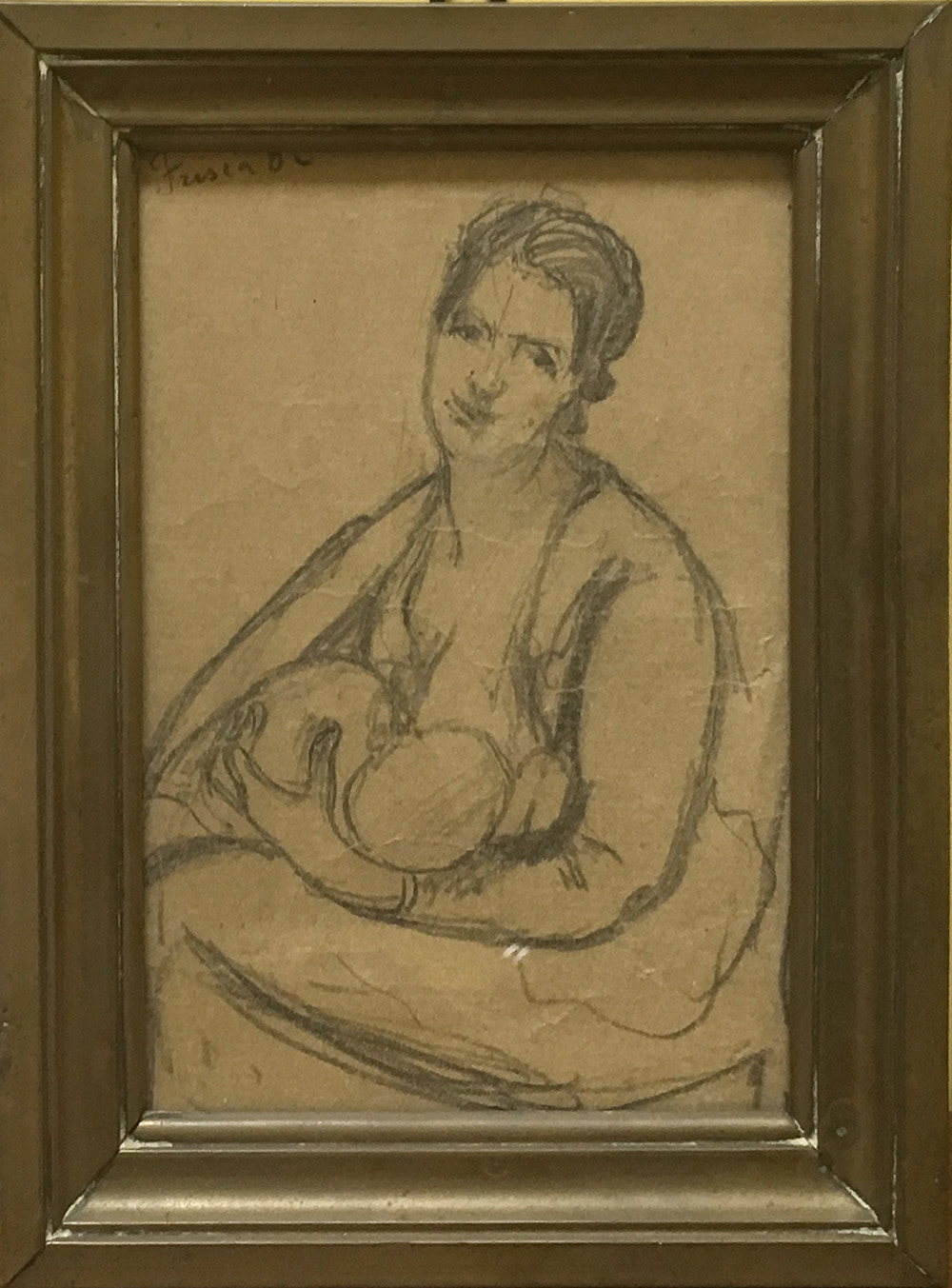 Donato Frisia (Merate 1883 - 1953) "La moglie del pittore" disegno a matita...