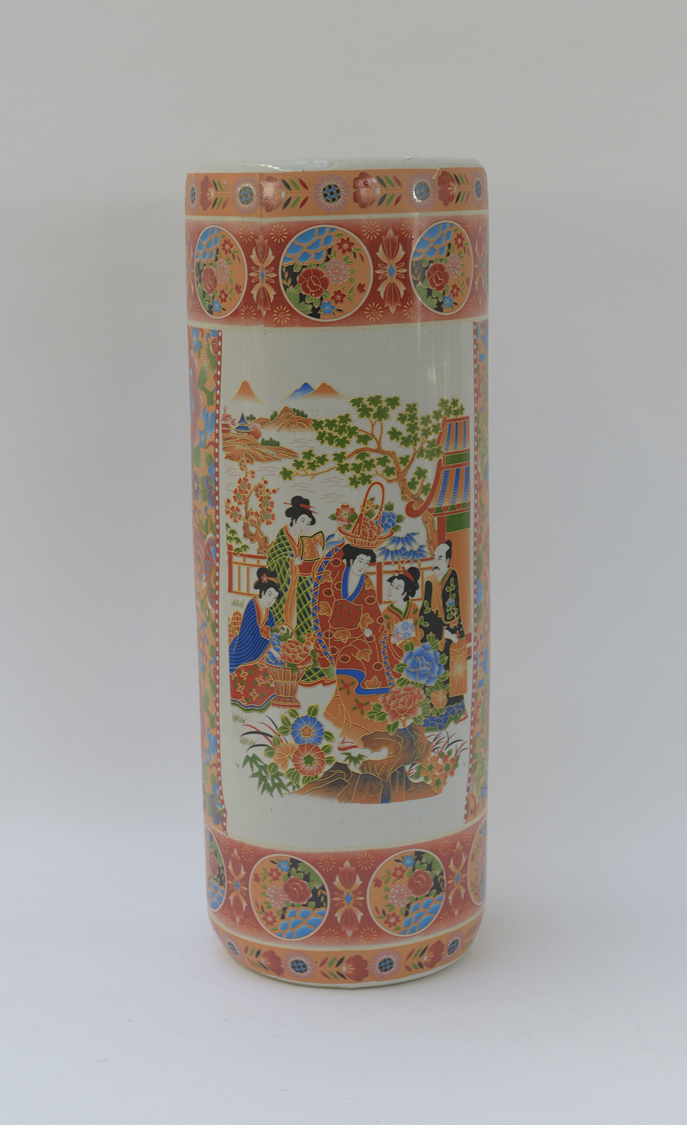 Portaombrelli in ceramica con decoro orientale (h cm 60) (lievi difetti)