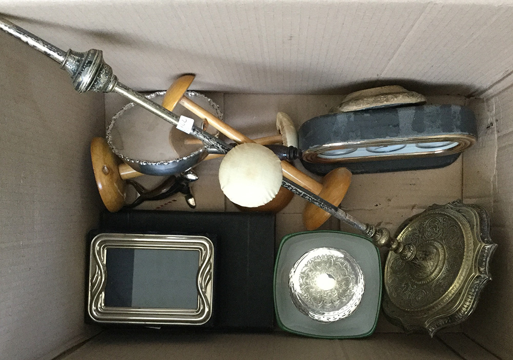 Cartone contenente numerosi oggetti di diversa fattura ed epoca (difetti)