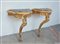 Coppia di consolles in legno intagliato e dorato a motivi vegetali. Piani in...