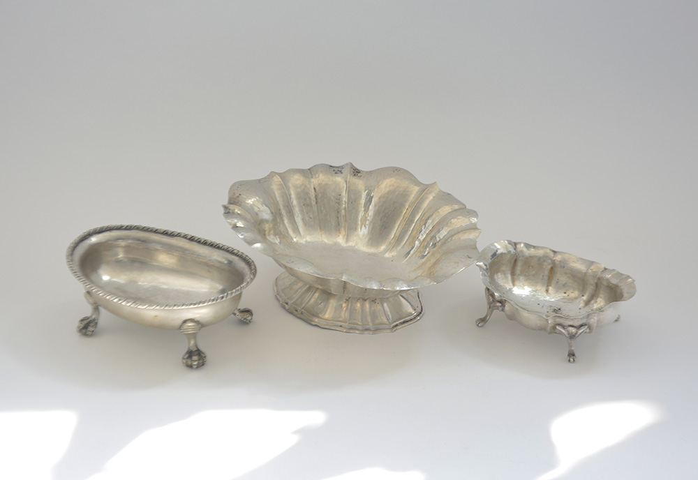 Lotto composto da tre alzate in argento di epoche diverse, una con punzoni San Marco (gr. 600)