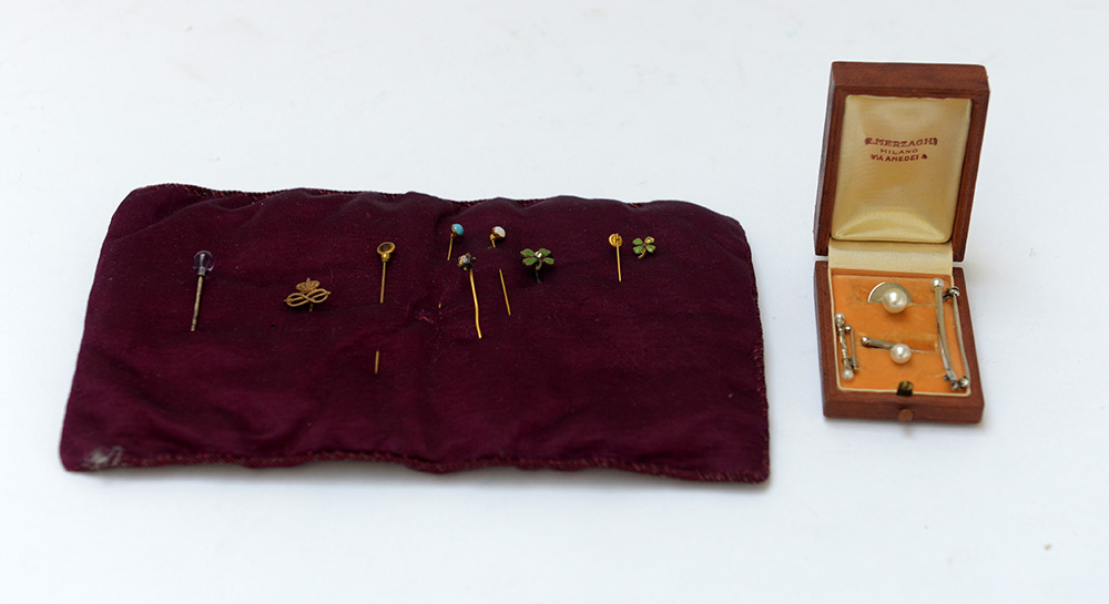 Lotto composto da spilloni, due spille, un gemello e un bottone, in metallo,...