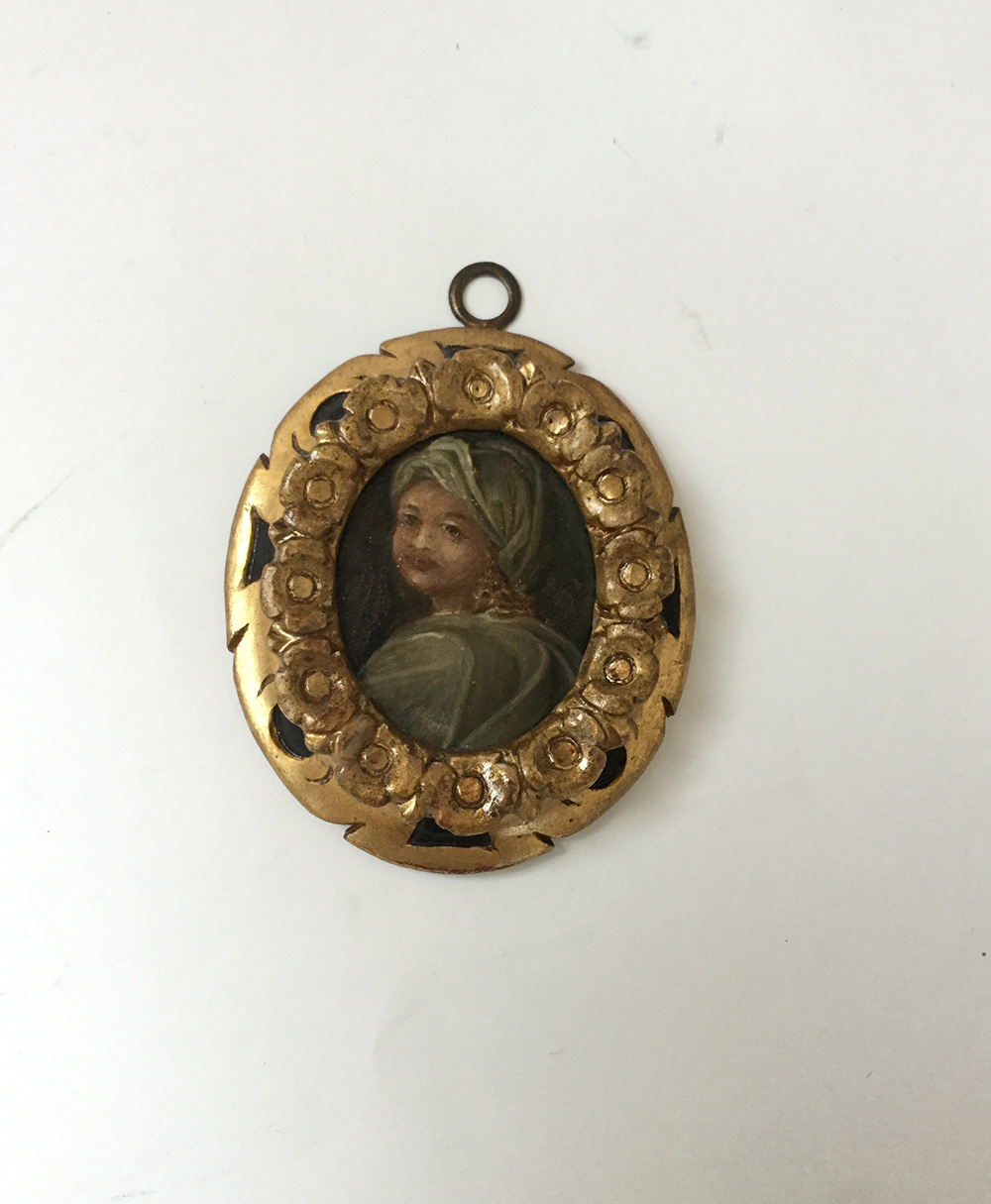 Ignoto "Ritratto di donna" miniatura ovale (cm 6x5) In cornice (difetti)