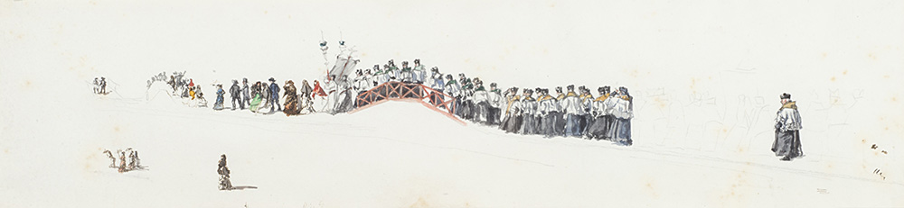 Scuola del secolo XIX "Processione" acquerello su tracce a matita su carta mm...