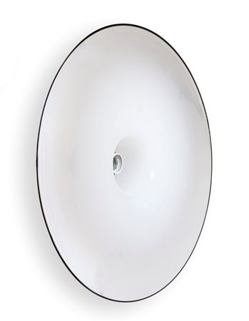 Lampada da parete o plafoniera in vetro bianco sfumato cristallo con filo in vetro colorato sul bordo.