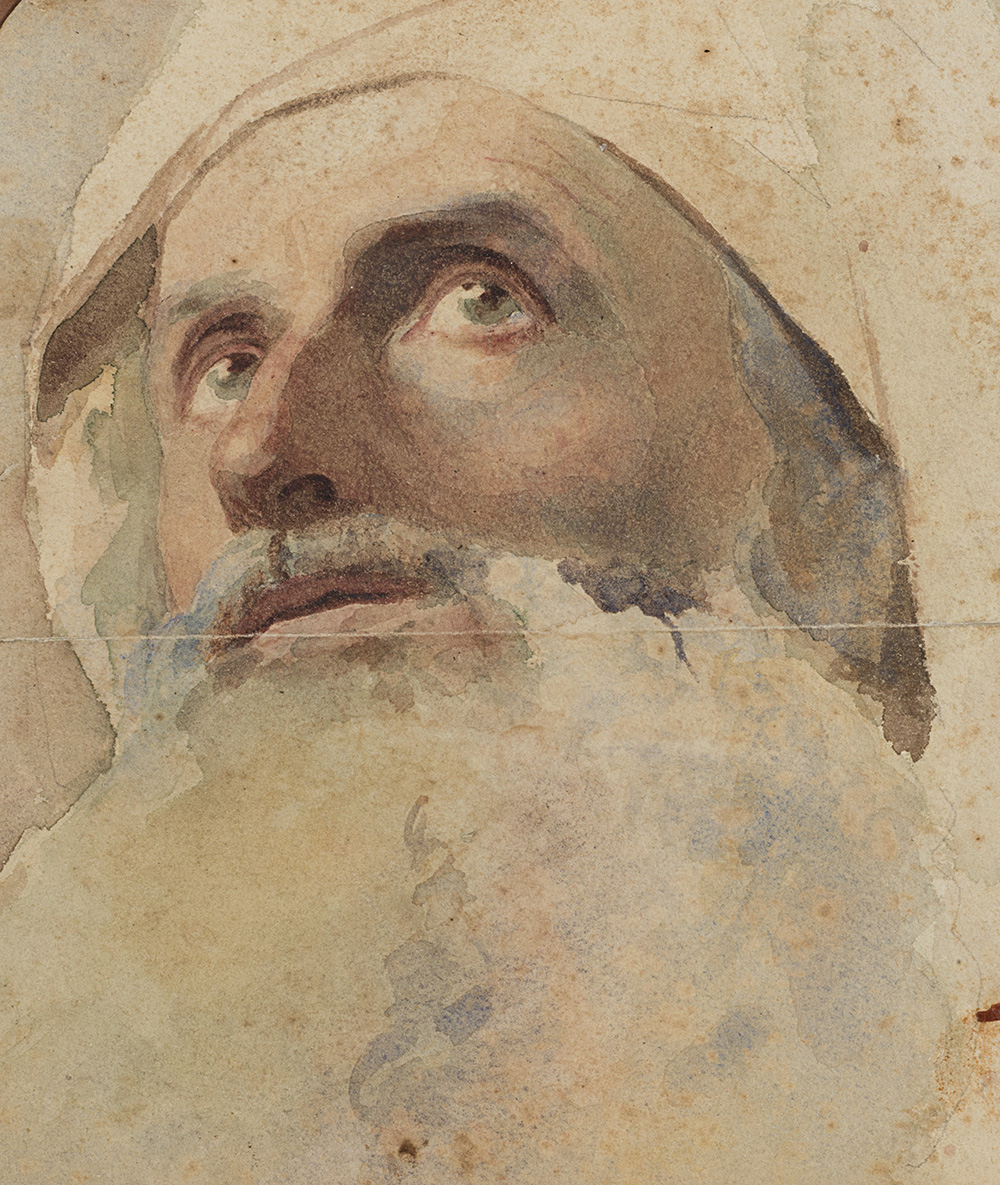 Scuola del secolo XIX "Studio di frate" acquerelli su carta applicata su un...