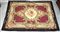 Tappeto Aubusson, Francia metà secolo XIX Decoro a medaglione con puntali, con tre bouquet su fondo bianco. Angolari bordeaux e bordura simile a cornice intagliata, profilo esterno color granato scuro (cm 344x250) (difetti)