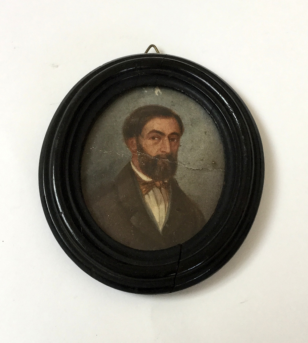 Scuola del secolo XIX "Ritratto di gentiluomo" miniatura ovale (cm 6x5) In cornice (difetti)