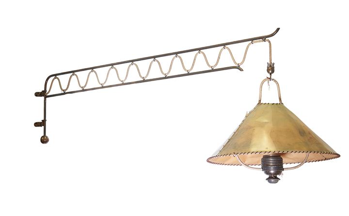 LAMPADA Lampada da parete. Braccio in ottone con decoro a onde parzialmente...