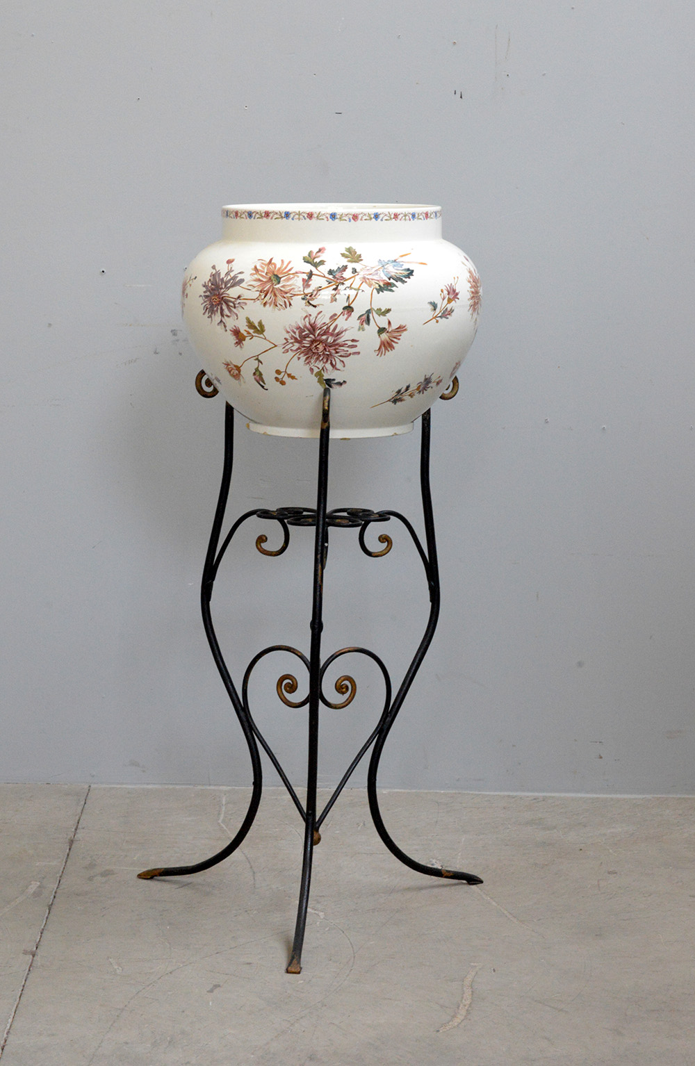 Lotto 4323 | Lotto composto da un grande cachepot e una base per vasi in ferro smaltato...