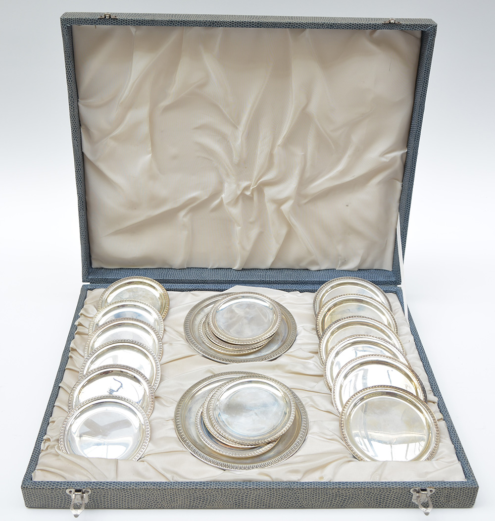 Lotto 4351 | Scatola contenente sottobicchieri in argento (gr 530)