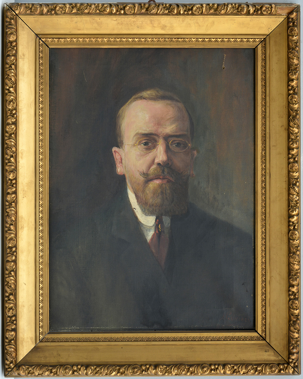 Firma indecifrata "Ritratto maschile" olio su tela (cm 64x47) firmato in basso a destra, in cornice (difetti)