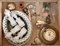 Manifattura di Nove, lotto composto da un centrotavola con vassoio a tesa traforata e quattro elementi decorativi con vasi fioriti a cui si uniscono altri oggetti per usi differenti (difetti)