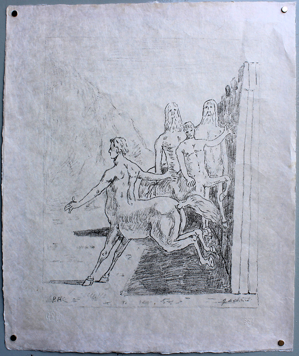 Giorgio De Chirico (Volos 1888 - Roma 1978) "La famiglia dei centauri " 1973 litografia, cm 56,5x50 Firmata e numerata P.A.