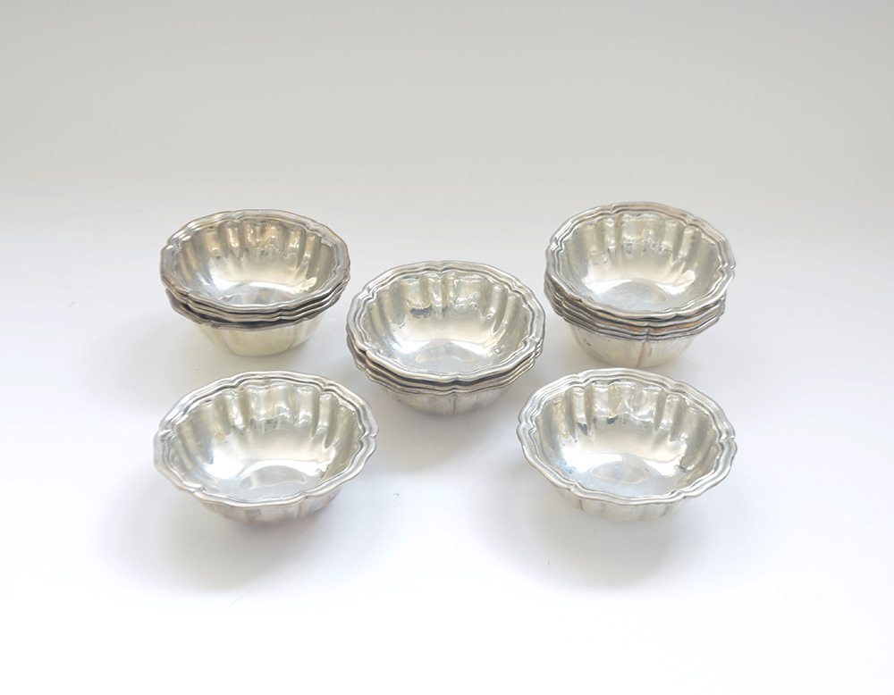 Lotto 4434 | Gruppo di sedici lavadita in argento con bordi sagomati. Titolo 800 (gr....