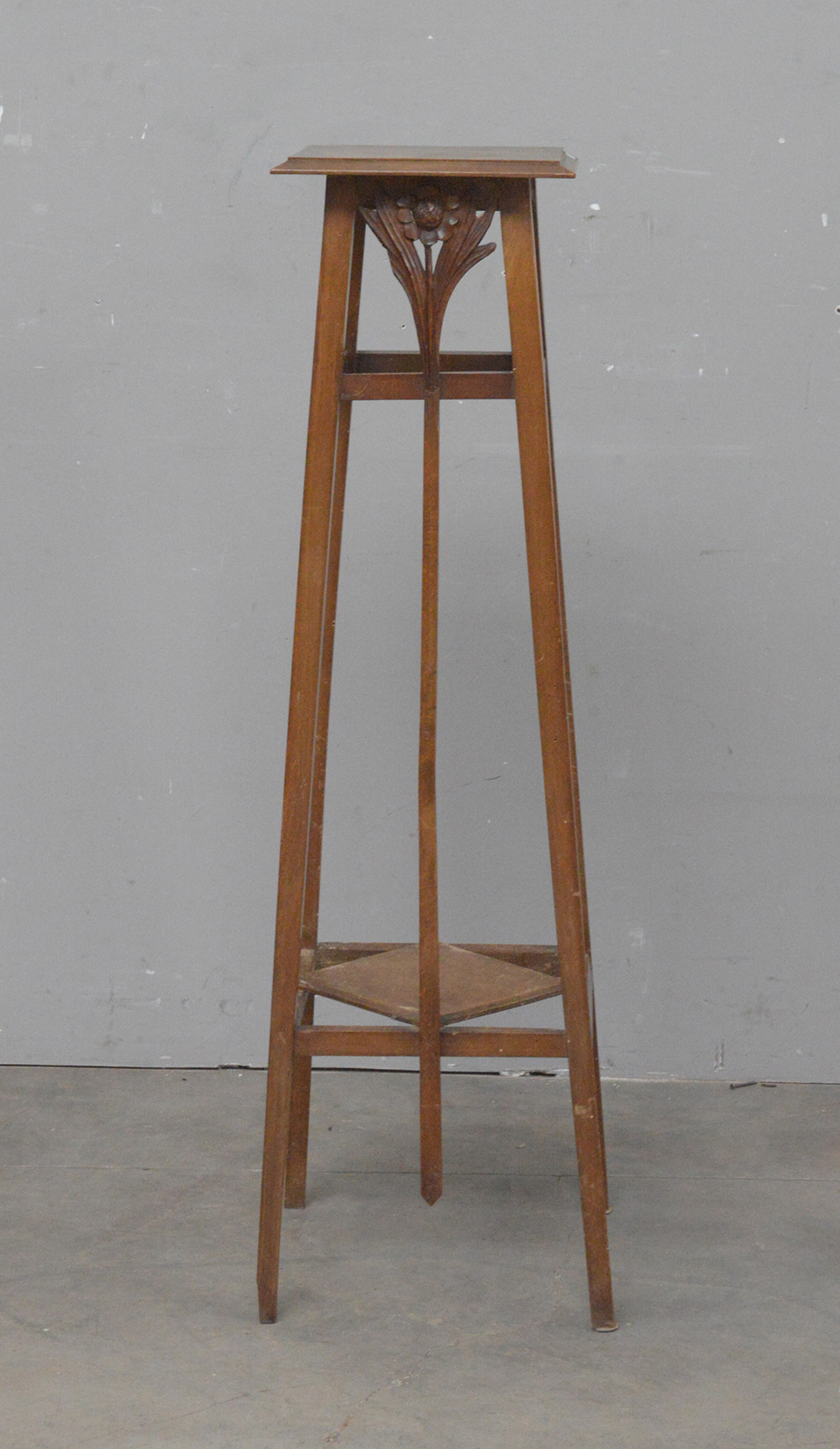 Colonna portavaso Liberty in noce a due ripiani (h cm 106) (difetti)