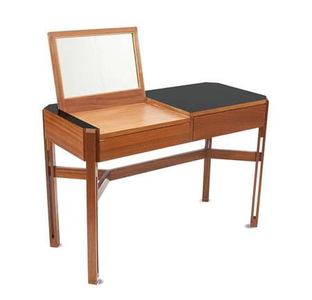 PARISI ICO Toeletta in legno con piano in laminato plastico nero. Un cassetto...